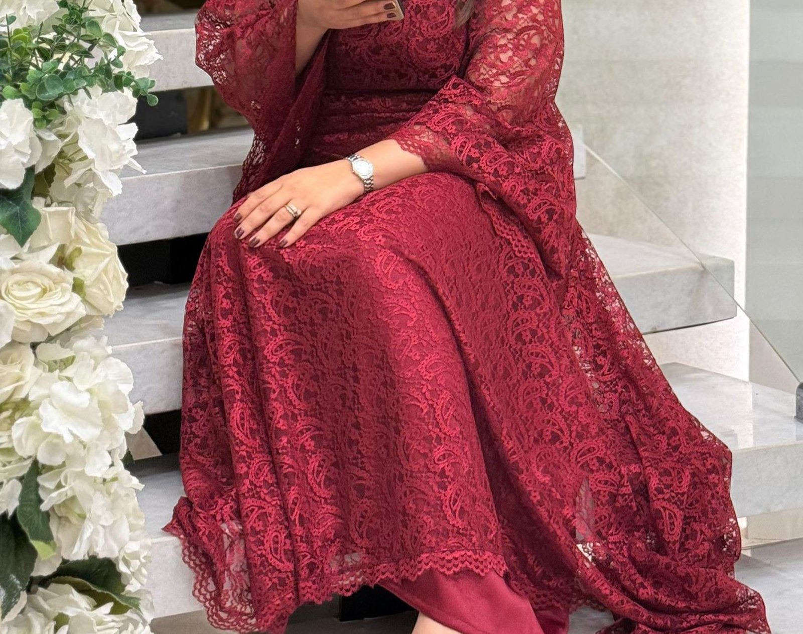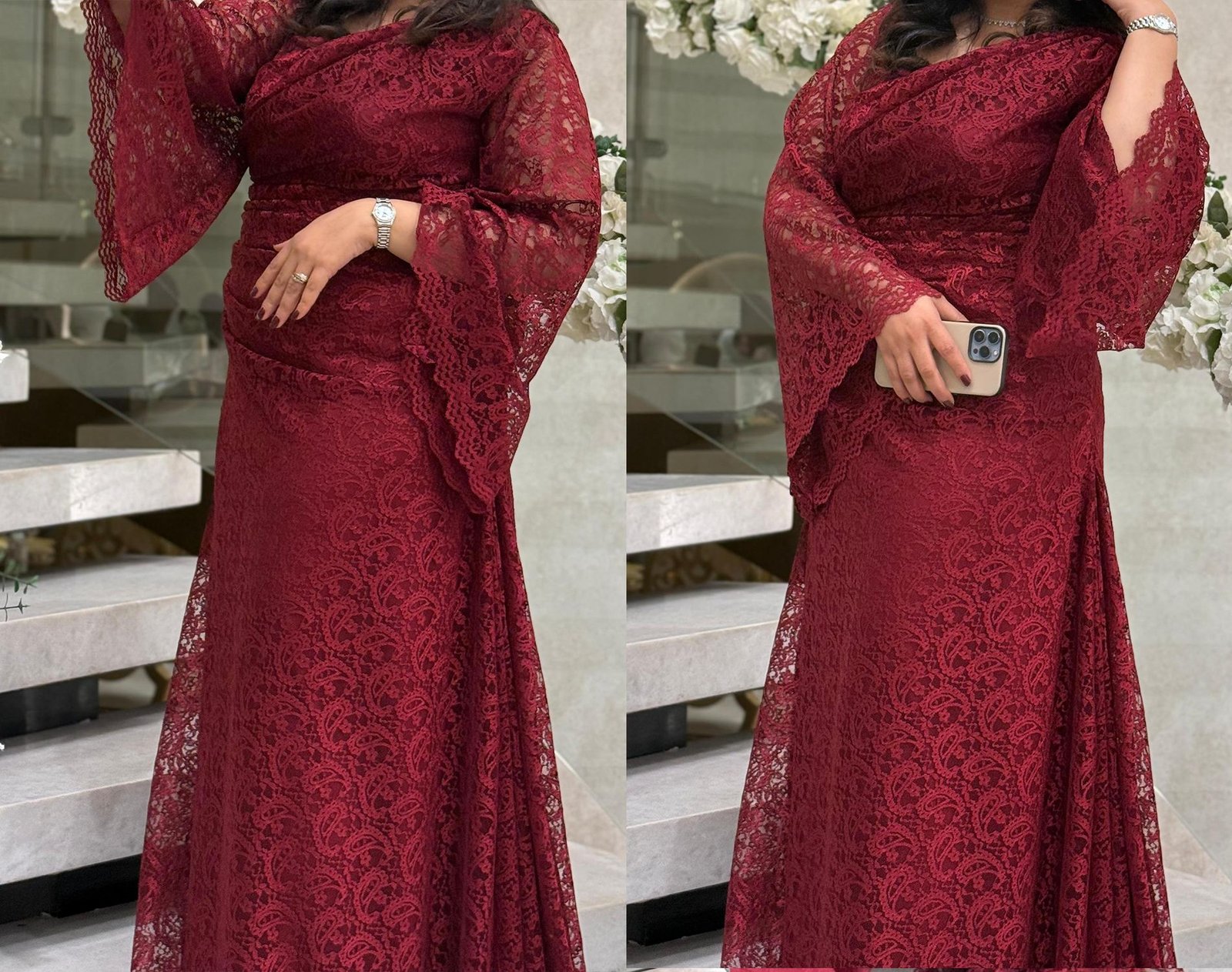 فستان دانتيل عنابي مقاس L-XL
